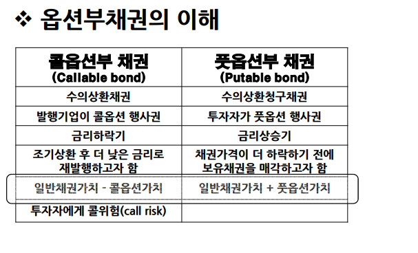 풋옵션 프리미엄 < 채권