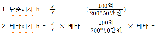 헤지비율 : 현물포지션 크기에 대한 선물 포지션 크기 (주식에선 베타)